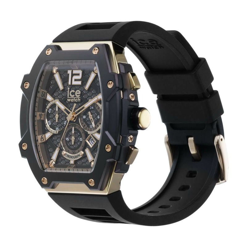 クロノグラフモデルはそれぞれ異なるダイヤルデザインが特徴で、ハニカムパターンとグレインテクスチャの組み合わせが視覚的にも楽しい「ブラックゴールド」。